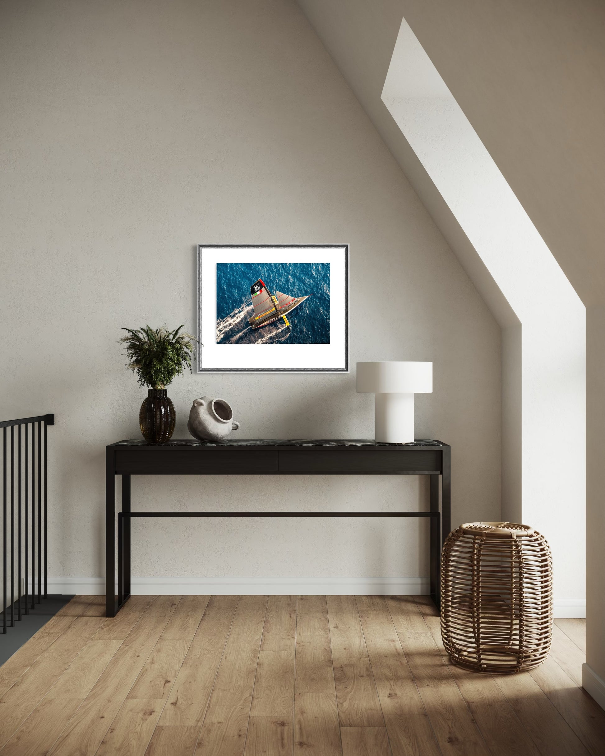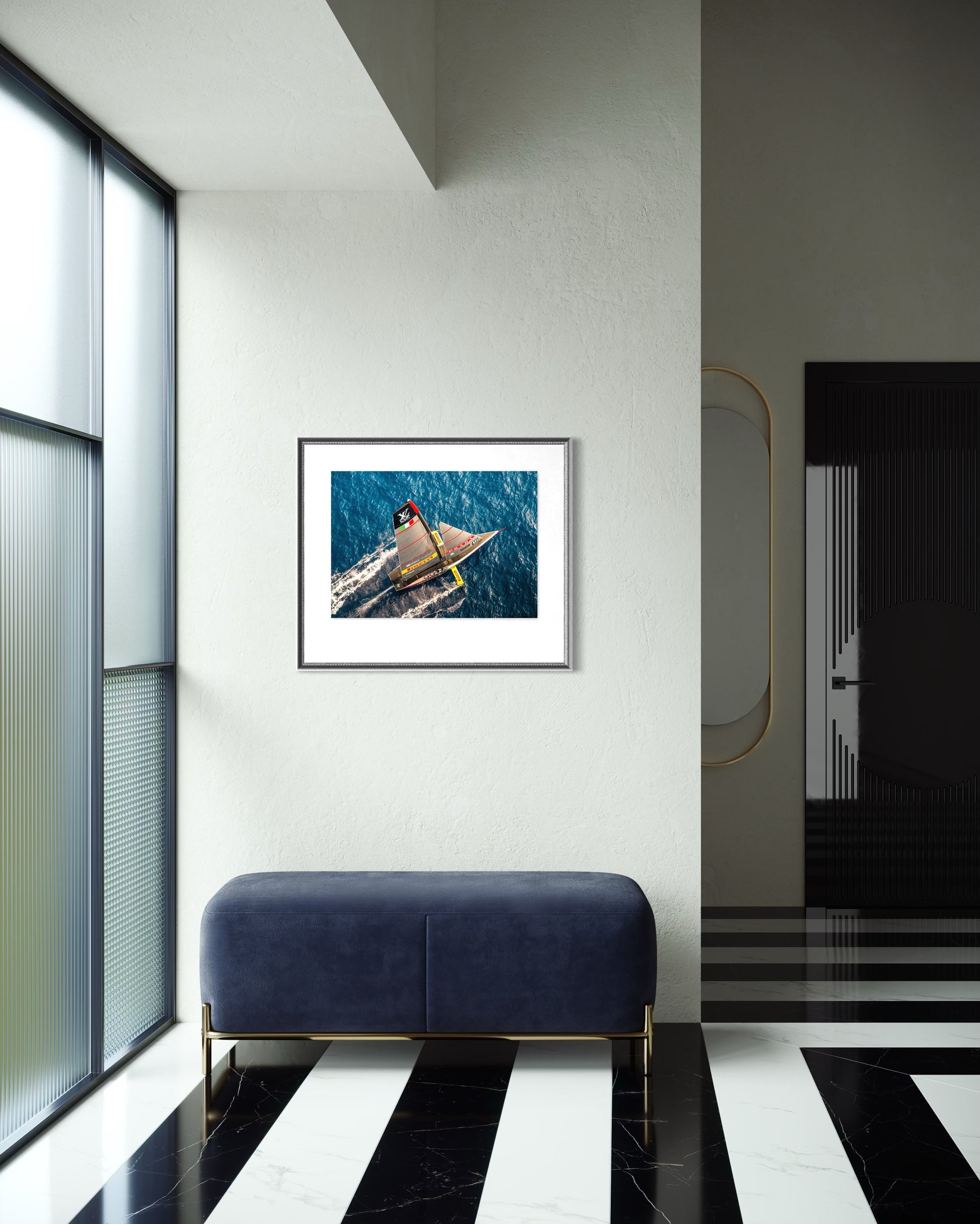 Captured during the America’s Cup 2024, this image freezes a moment where modern sailing appears to defy gravity. Foils lift, hulls rise, and the yachts skim above the surface of Barcelona’s waters - a precise balance of speed, engineering, and restraint. The scene reflects sailing at its most advanced, reduced to motion, light, and control.