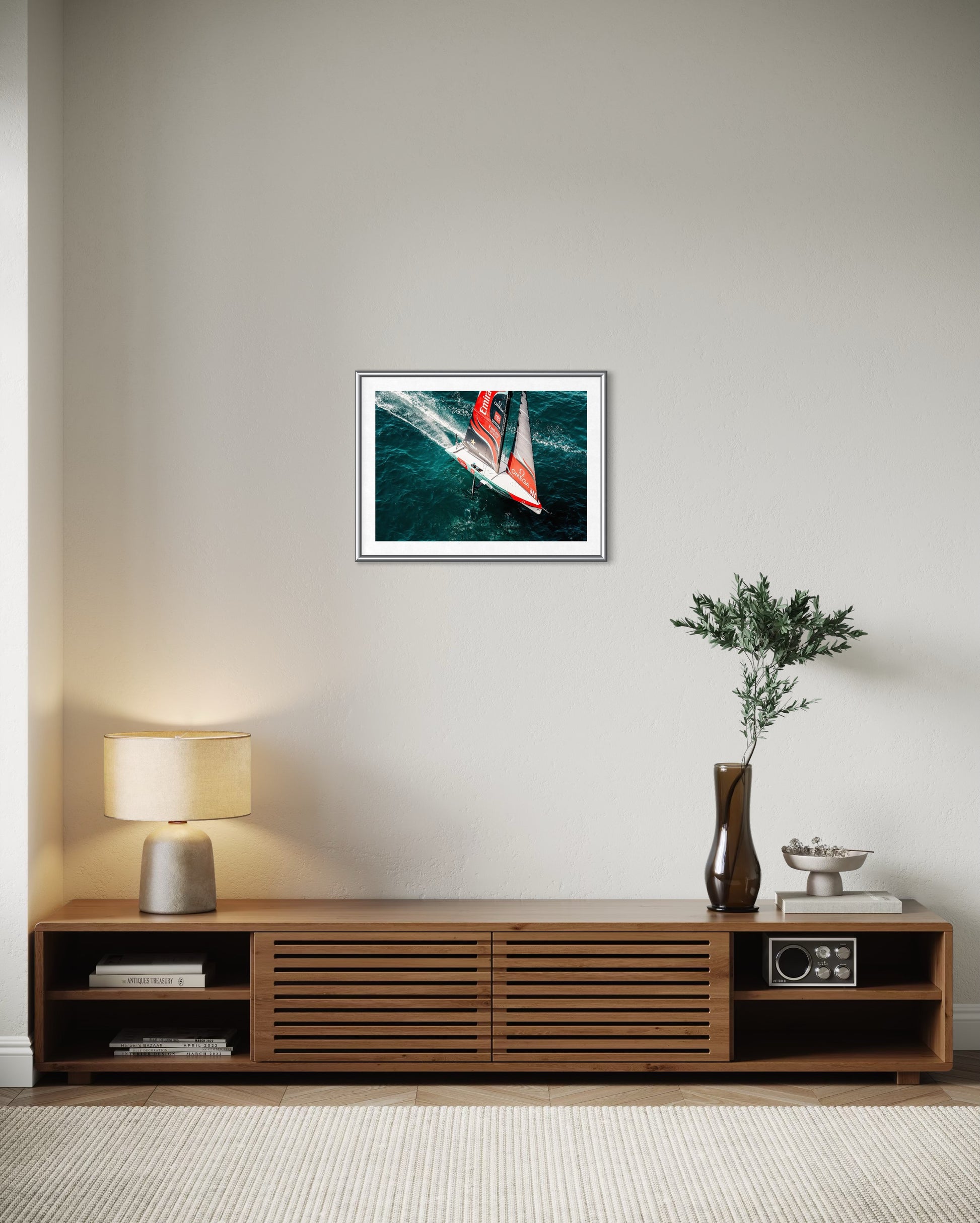 Captured during the America’s Cup 2024, this image distills the moment where modern sailing feels weightless. Cutting-edge yachts skim across the waters of Barcelona, suspended between wind and sea - innovation and tradition meeting in perfect balance against the city’s coastline.