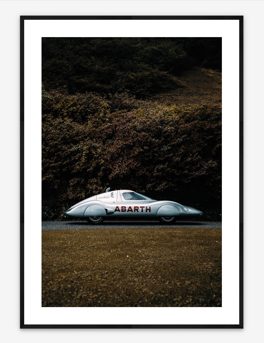 Immortalized at the "FuoriConcorso" event in Villa del Grumello, Como, Italy, during 2023, this photograph presents "La Principessa," the Abarth Monoposto Pinifarina. This remarkable vehicle, with its ultra-low drag coefficient of 0.20, once covered 10,000 km at an average speed of 189 km/h. The sleek design, beautifully highlighted against the stunning backdrop of Lake Como, offers a tribute to automotive innovation.