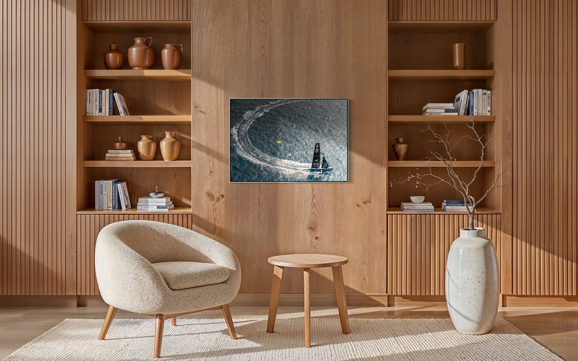 Captured during the America’s Cup 2024, this image focuses on a fleeting balance between lift and water as modern racing yachts arc across the surface of Barcelona’s coastline. Foils rise, spray falls away, and the moment settles into a quiet rhythm - controlled, technical, and precise.