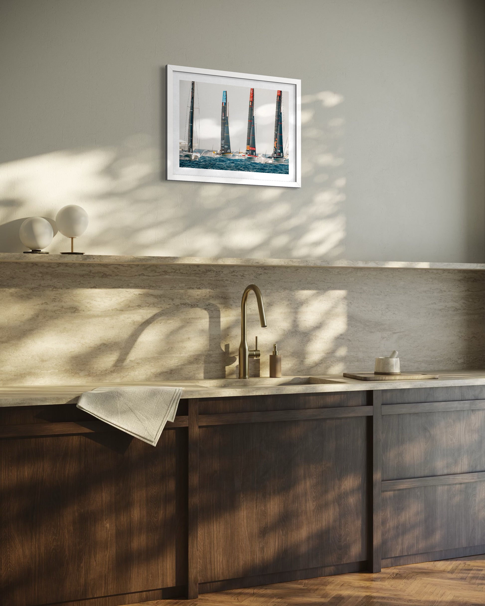 Captured during the America’s Cup 2024, this image brings four high-performance yachts into a single frame, moving in close formation across the waters of Barcelona. Precision, balance, and timing define the moment - a fleeting convergence where competition becomes composition, set against the open horizon.