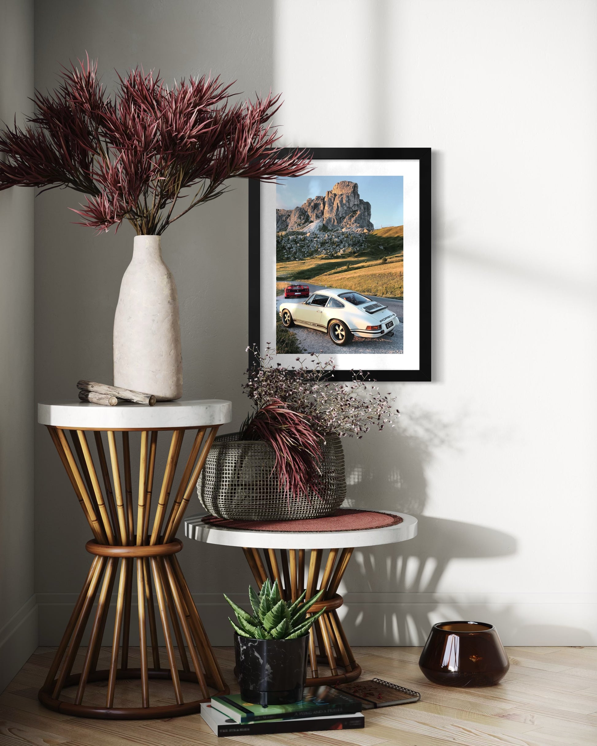 Captured at Passo Giau in 2017, this image freezes a fleeting moment of pursuit in the high mountains. A Porsche 911 reimagined by Singer follows a 1996 Ferrari F50 through sweeping alpine roads - two philosophies of performance moving in sync. The scene carries the tension, sound, and scale of the landscape, long after the cars have passed.
