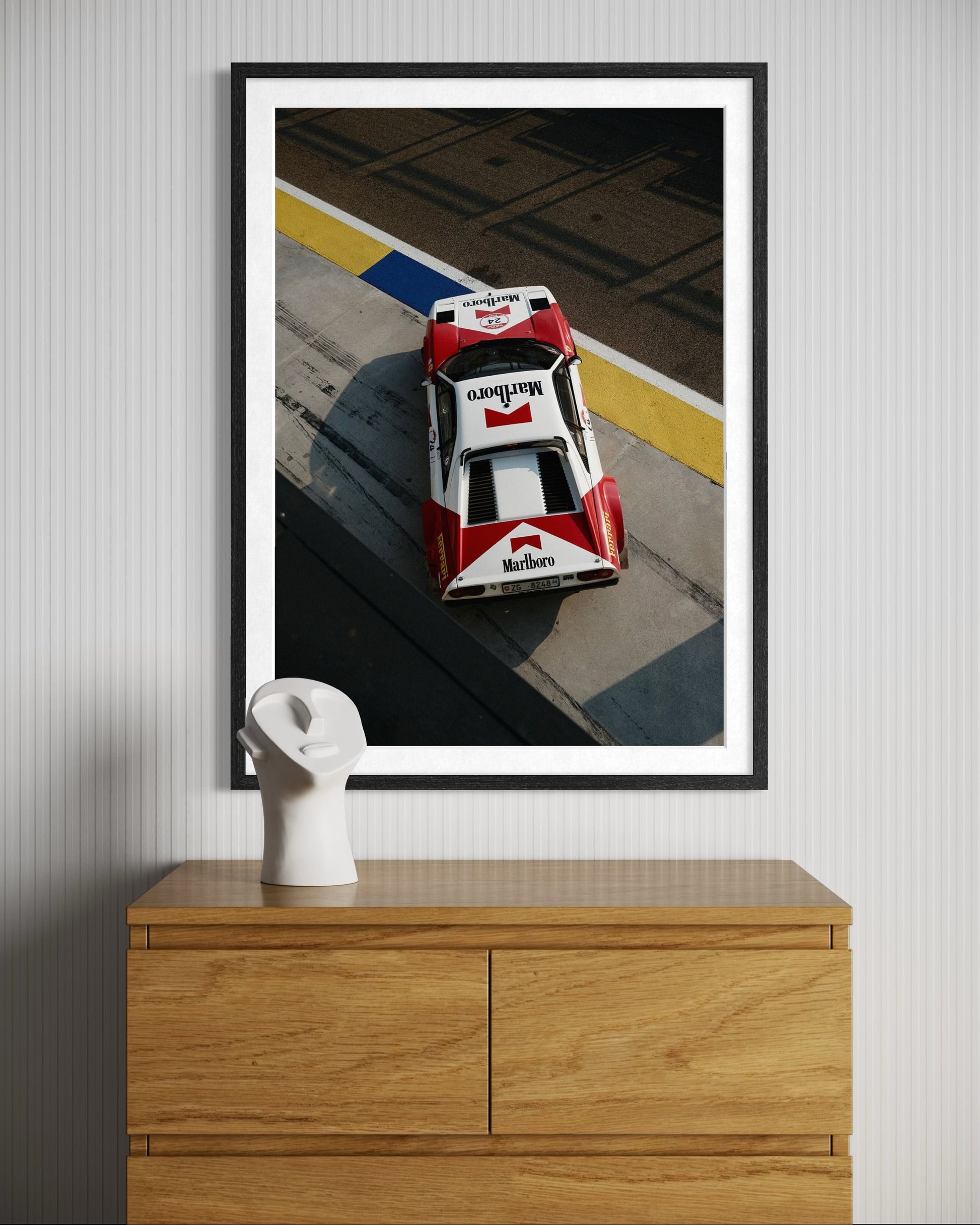 Captured in 2023 as a 1981 Ferrari 308 GTB by Michelotto enters the Autodromo di Modena, this image nods to a different era of motorsport culture. A time when rebellion, excess, and attitude were part of the spectacle - both on and off the track. The moment balances nostalgia with irony, freezing a fleeting reference to a world that has since moved on.