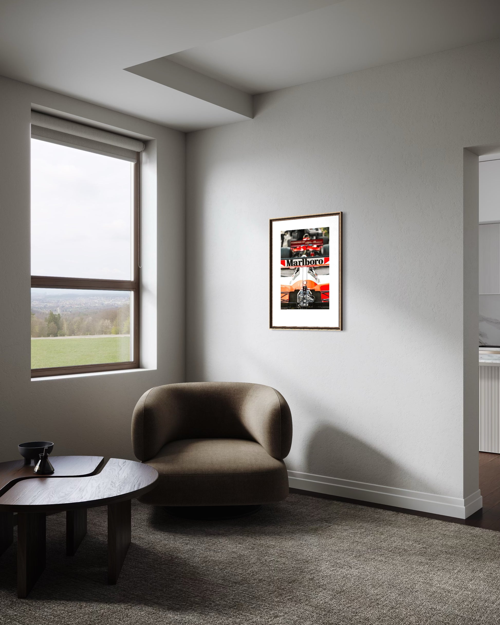 This image pays tribute to Ayrton Senna and his defining partnership with the McLaren MP4/4 during the 1988 Formula One season. More than a record-breaking machine, the MP4/4 became a symbol of precision, dominance, and an era shaped by Senna’s relentless pursuit of perfection. The photograph captures that legacy in a quiet, reflective moment - distilled down to form, memory, and meaning.