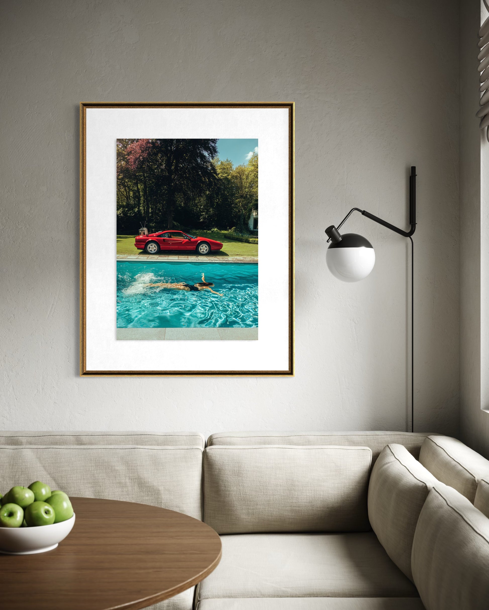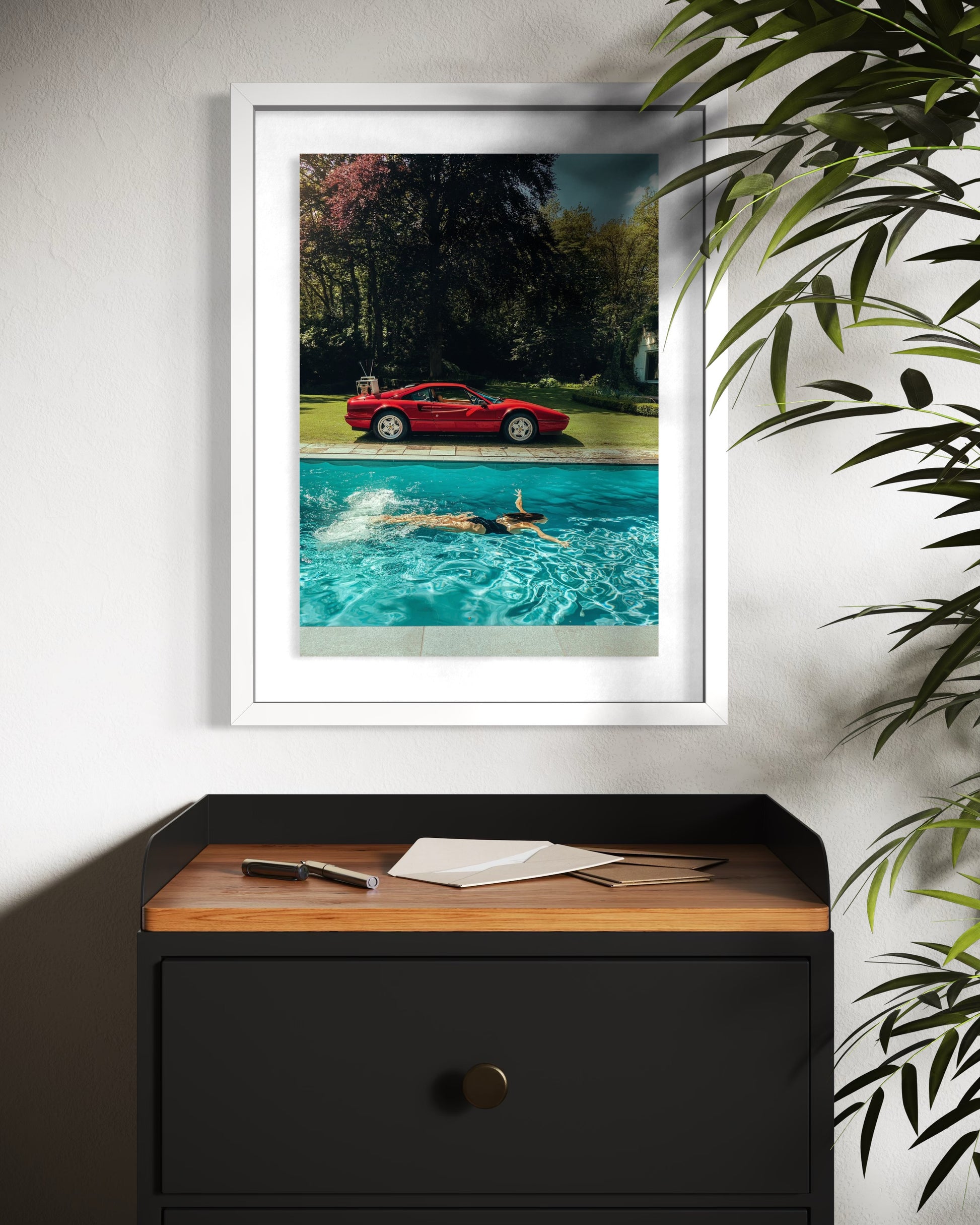 A sunlit summer scene frames the Ferrari 328 GTB beside a quiet pool, where vibrant red bodywork meets calm blue reflections. Captured by the Rooy Twins, the image evokes an effortless Mediterranean mood - relaxed, balanced, and timeless.