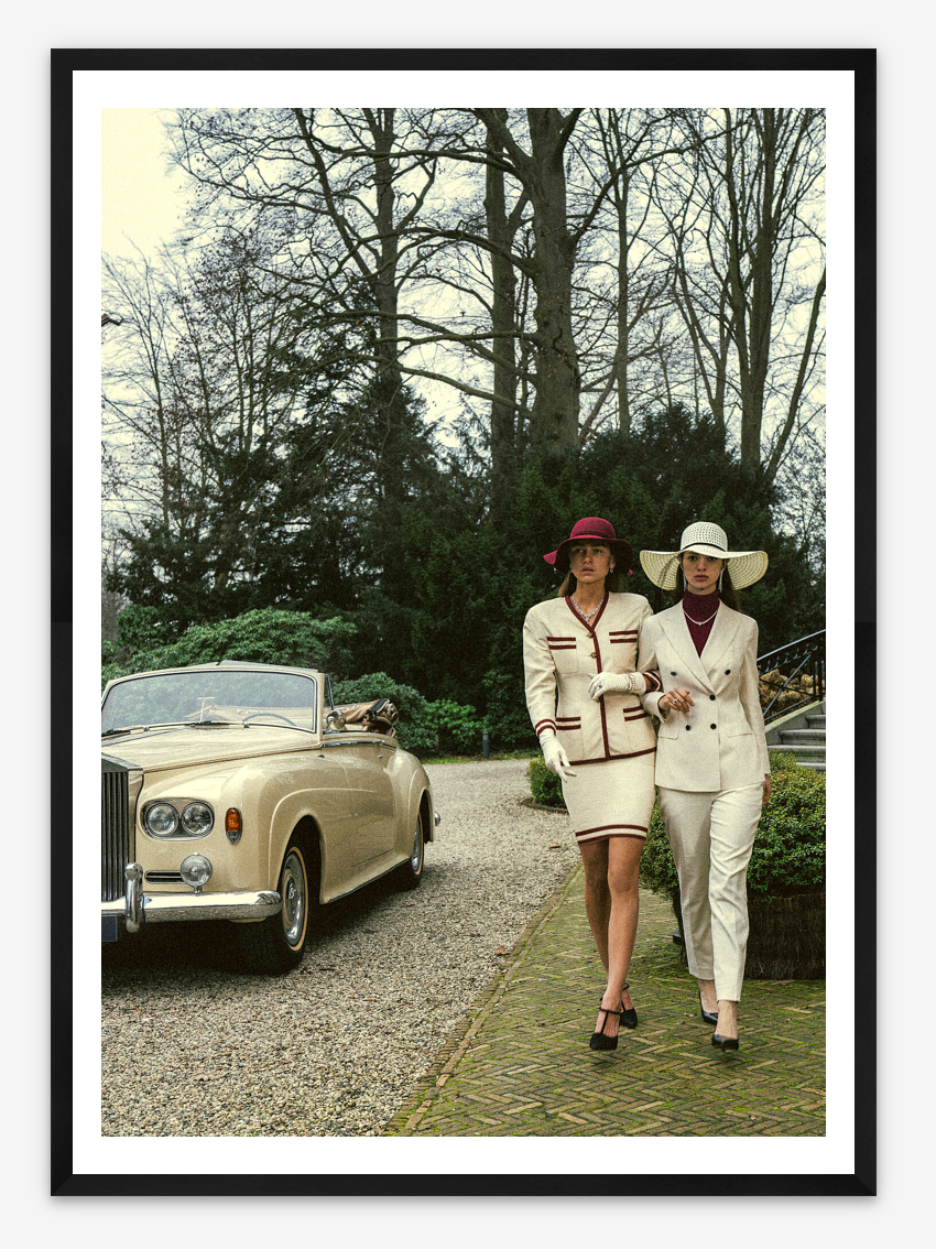 Stepping out of a Rolls-Royce in full Chanel—this is the epitome of style. The Rooy Twins capture this timeless moment where fashion and automotive excellence meet.